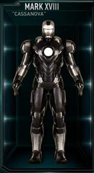The Mark XVIII (Mark 18), also known by its codename as "Casanova", is a Stealth Artillery Level RT Suit, and was one of several new Iron Man Armors created by Tony Stark as part of the Iron Legion. The armor was created sometime after the Battle of New York.