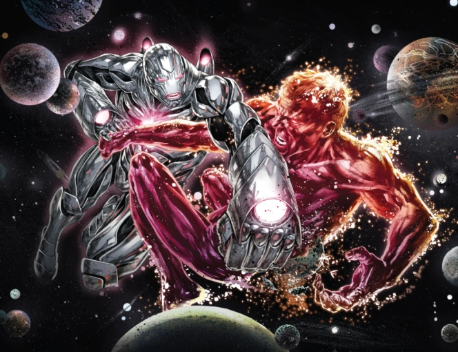 Korvac followed Thor to present day Earth-616, where he happened upon the Tau II, the worldship of planet consuming entity Galactus. Attempting to download the ship's vast treasure trove of knowledge into his own system, Korvac was imbued with the Power Cosmic. Now elevated to near omnipotence, Korvac altered his appearance into an idealized version of his original human form and traveled to Earth with the intent of reshaping it into a utopia.